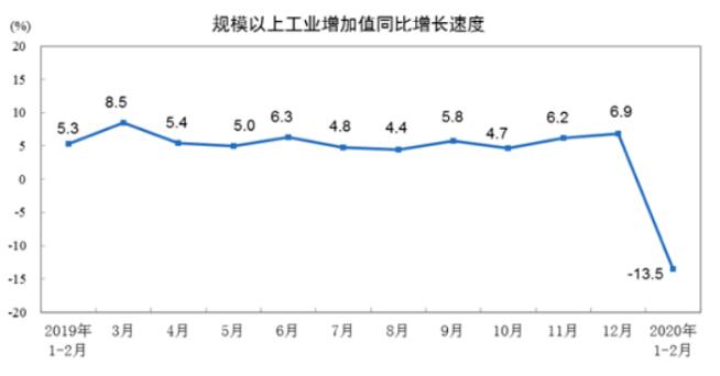 其中,消費(fèi)方面,1-2月份,社會消費(fèi)品零售總額52130億元,同比下降20.5%。