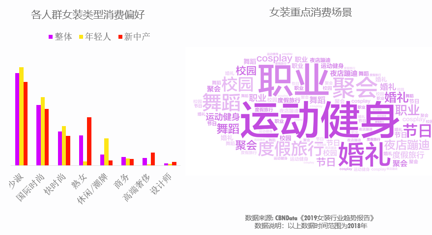 除此之外,女性的穿衣風(fēng)格也呈現(xiàn)個(gè)性、多元化發(fā)展,美麗和帥氣不再對(duì)立,休閑、商務(wù)、設(shè)計(jì)師風(fēng)格成為年輕女性的偏好,新中產(chǎn)則在衣櫥里增添了潮流尖貨與高奢品牌。