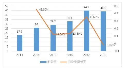 從消費量來看,2013年以來,我國成人失禁用品的消費量增長較為迅速,從2013年的 17.9億片增加至2018年的44.1億片,年均復(fù)合增長率達(dá)到19.8%。