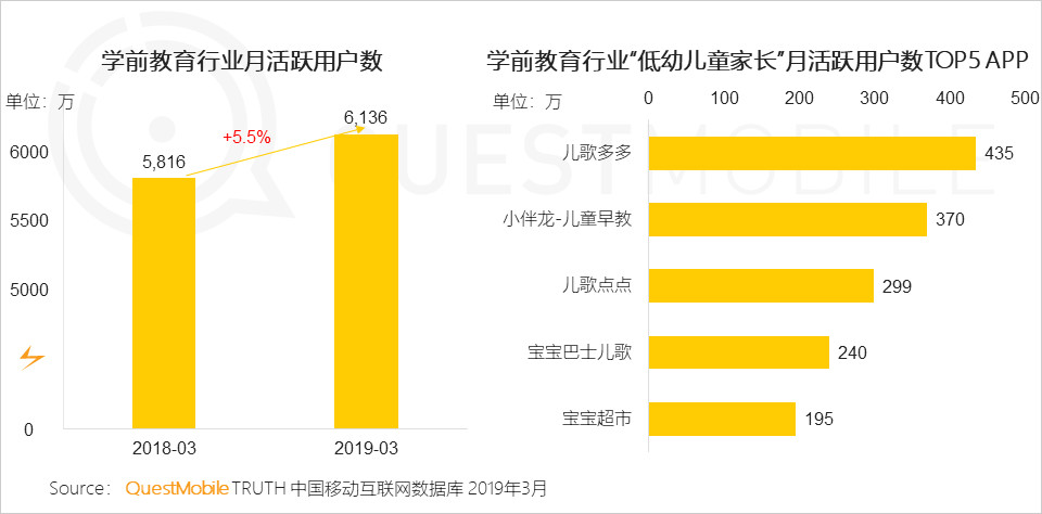 最新數(shù)據(jù)顯示,學(xué)前教育用戶(hù)增速明顯高于整體移動(dòng)網(wǎng)民增長(zhǎng)速度,而在線(xiàn)早教憑借技術(shù)的快速發(fā)展深得家長(zhǎng)喜愛(ài),在學(xué)前教育行業(yè)”低幼兒童家長(zhǎng)“月活躍用戶(hù)數(shù)TOP5APP排列依次分別是兒歌多多、小伴龍-兒童早教、兒歌點(diǎn)點(diǎn)、寶寶巴士?jī)焊琛殞毘?。其中早教APP兒歌多多以435萬(wàn)排列第一,其次為小伴龍-兒童早教月活躍用戶(hù)達(dá)370萬(wàn)。