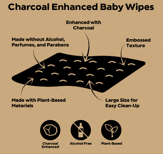 Dyper 還推出了一款木炭增強型嬰兒濕巾,該濕巾具有低過敏性,由 100% 植物性材料制成,并添加了少量活性炭。它們是 98% 純水,不含酒精、香料或對羥基苯甲酸酯。具有壓花紋理,可實現(xiàn)更徹底的清潔,并提供更大尺寸,更容易清潔。