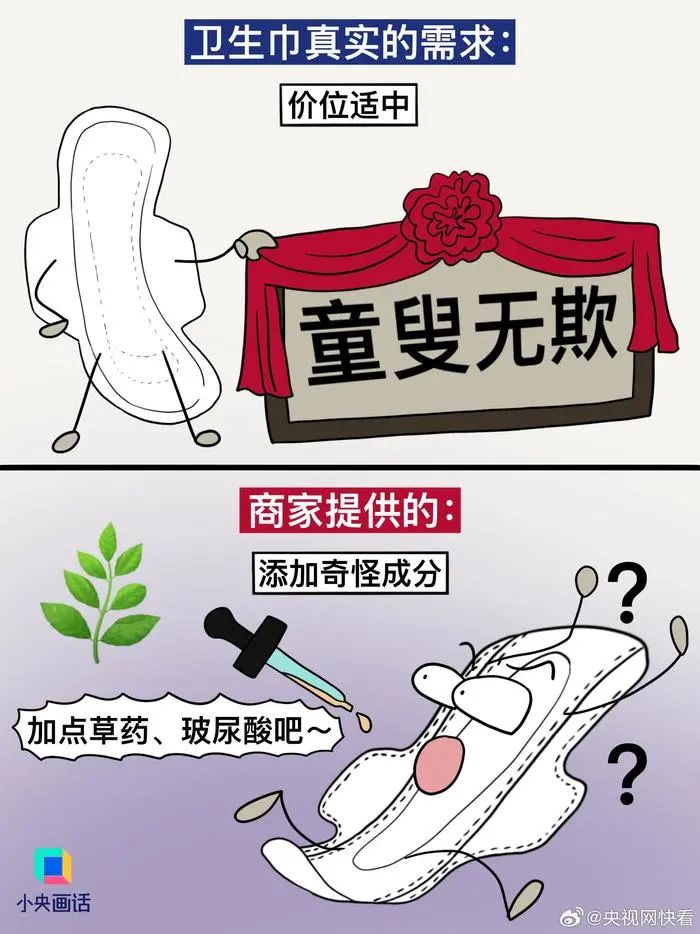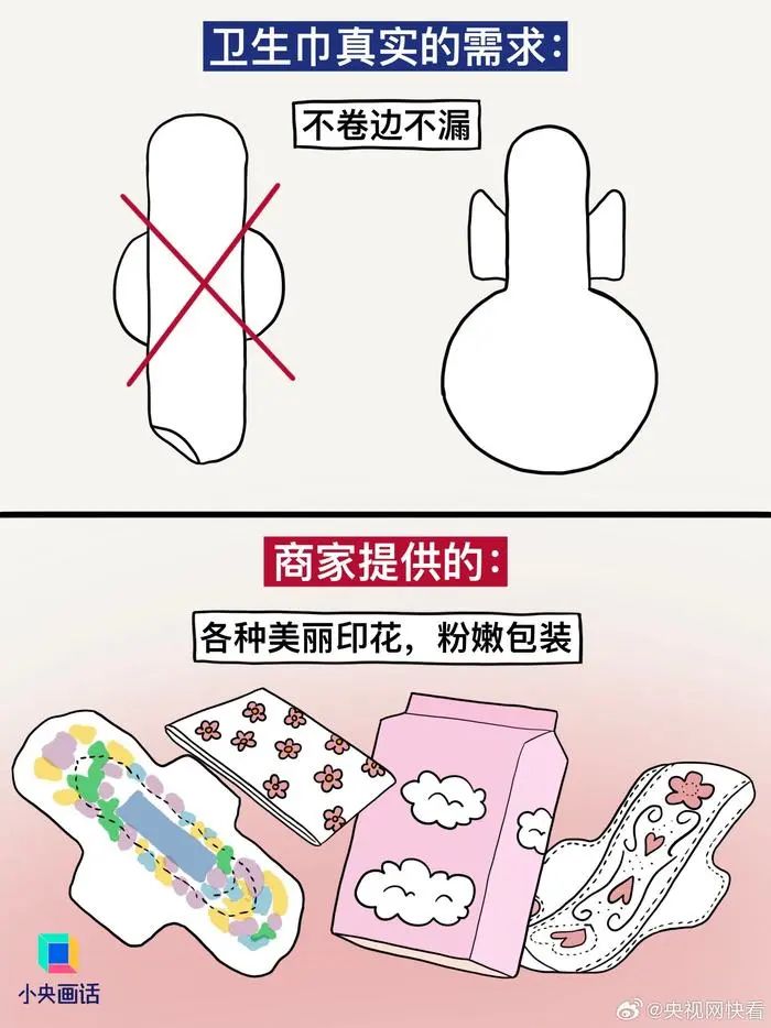 【#別拿消費(fèi)主義那套來(lái)做衛(wèi)生巾#】想不通,衛(wèi)生巾這種每個(gè)月都要用的東西,怎么會(huì)做得又貴又難用。商家以為我需要:加冰、加熱、加玻尿酸、粉嫩包裝、明星代言……實(shí)際我需要的:干凈衛(wèi)生、護(hù)翼好貼、安全不漏、價(jià)格適中。衛(wèi)生巾是日用品,別搞消費(fèi)主義輕奢那一套。(繪圖.阿彬的漫畫(huà)生活)#有種女性貧困叫月經(jīng)貧困#
