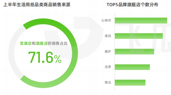 可以看到,2023上半年生活用紙的銷售來源中,旗艦店與官方旗艦店的銷售占比高達(dá)71.6%;品牌們通常會圍繞產(chǎn)品線或細(xì)分人群進(jìn)行店鋪矩陣搭建,進(jìn)而開展有針對性的營銷,以增加轉(zhuǎn)化幾率。